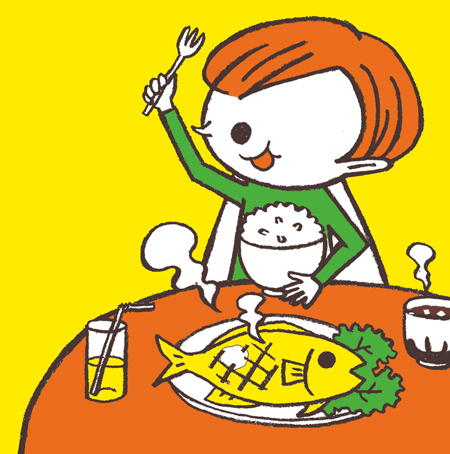 手描き線のあたたかさと鮮やかな色のベタ塗りで、